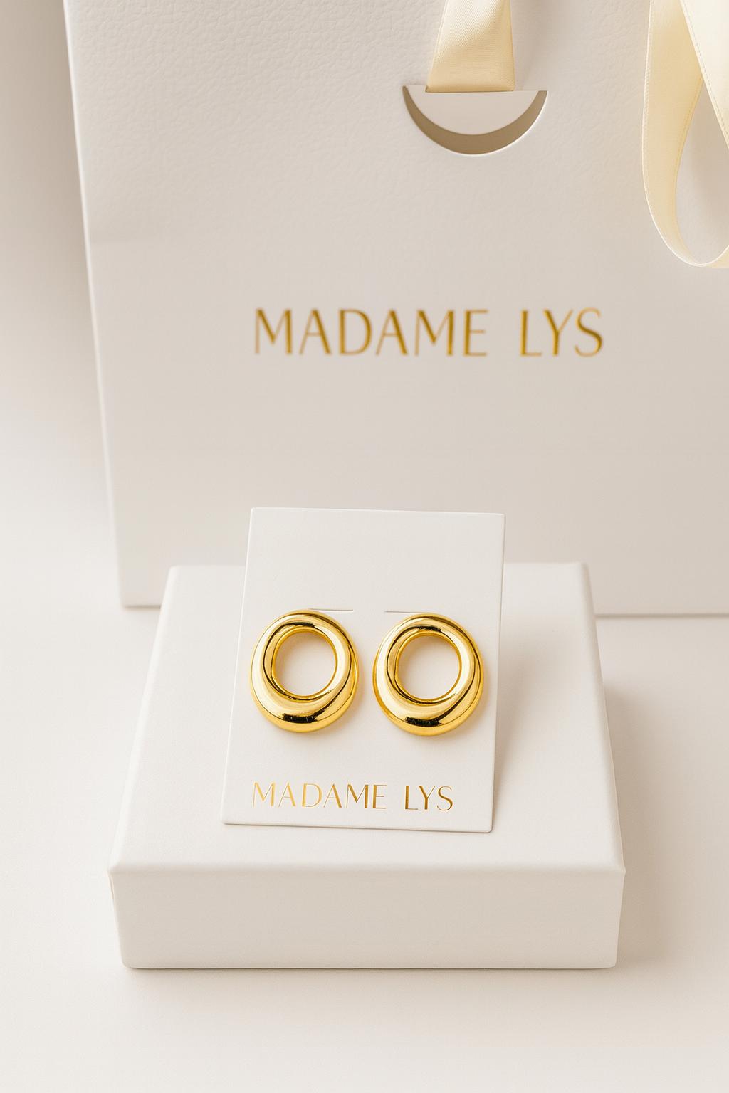 The Madame Lys Infinite Loop Earrings embody modern sophistication and timeless design. Plated in 18k gold, their smooth circular form reflects pure elegance — a perfect balance of simplicity and luxury.