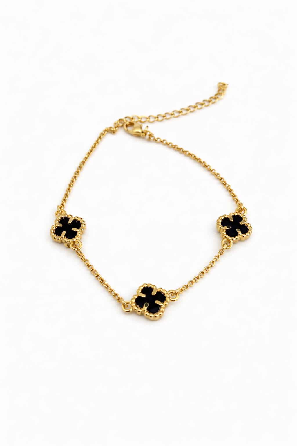 Bracelet trèfle noir plaqué or 18K