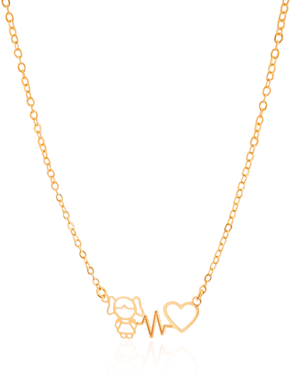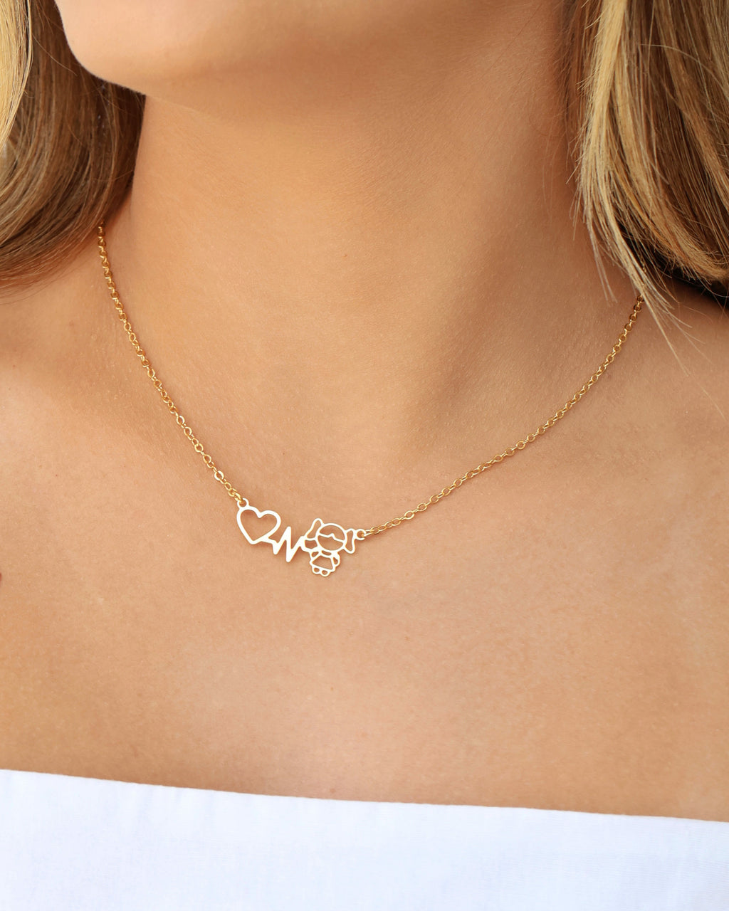 18K Gold Plated Pet Lover Necklace – Paw, Heartbeat & Heart Pendant