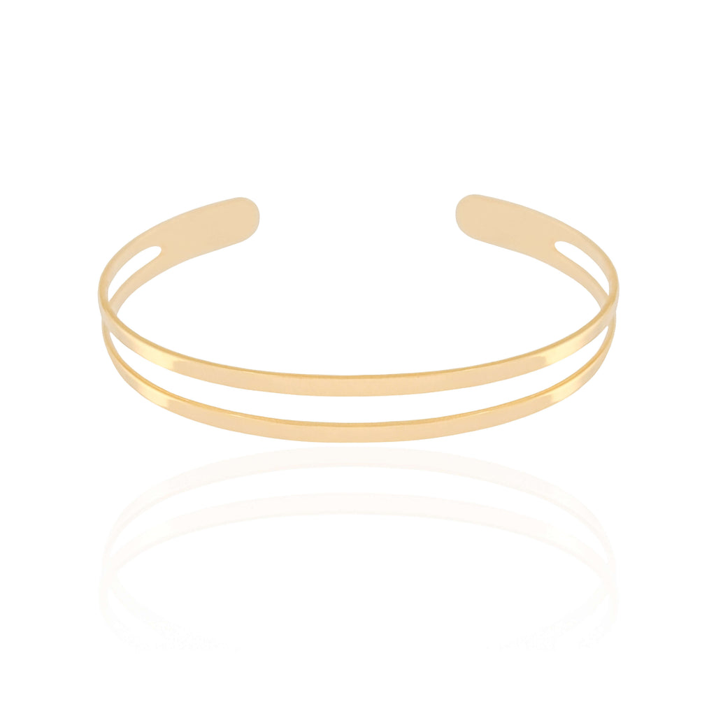Delicate and timeless, this 18K gold plated two-line bracelet exudes elegance in its purest form. With its slender and minimalist design, it adds a refined golden touch that enhances any outfit — from everyday looks to special occasions.