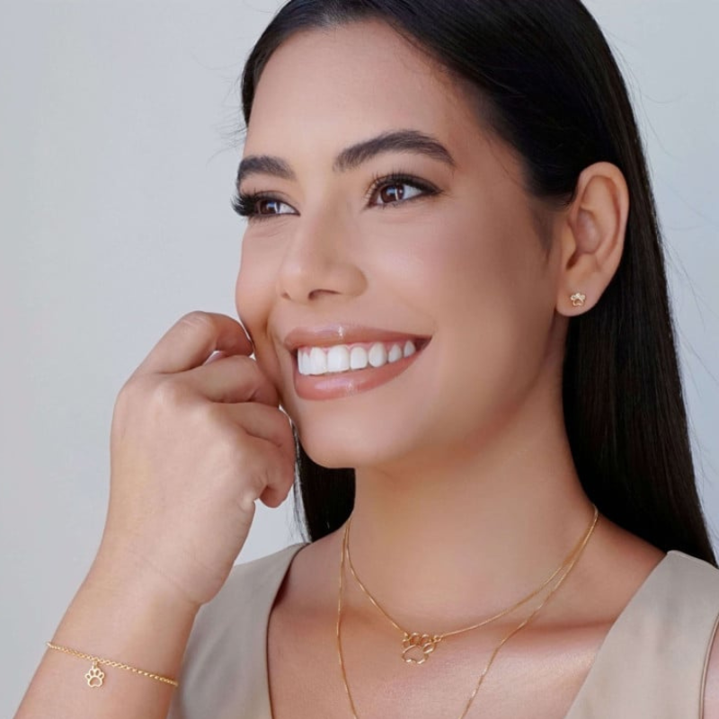The Pet Paw Earring Studded with Crystal 6 mm is a charming piece that blends delicacy and meaning, perfect for animal lovers. Measuring 6 mm, it features an adorable paw-shaped design adorned with sparkling crystals, offering a refined, luminous touch. Plated in 18K gold, it ensures a polished, long-lasting shine that enhances any outfit. Crafted from high-quality hypoallergenic materials, free of nickel, it provides comfort and safety for everyday wear. A sweet and elegant semi-jewelry piece that beautifully symbolizes love and affection for pets.